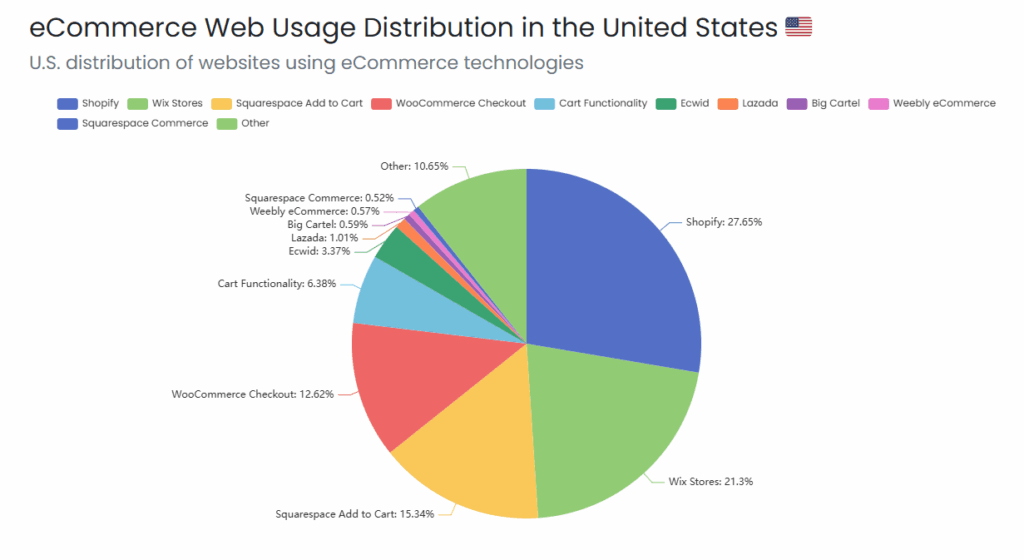 As of 2026, Shopify is the top eCommerce platform in the United States, with a market share of 27.65%, dominating the US market alone. Globally, Shopify supports close to 5 million stores, indicating rapid growth and a dominant position in the market.